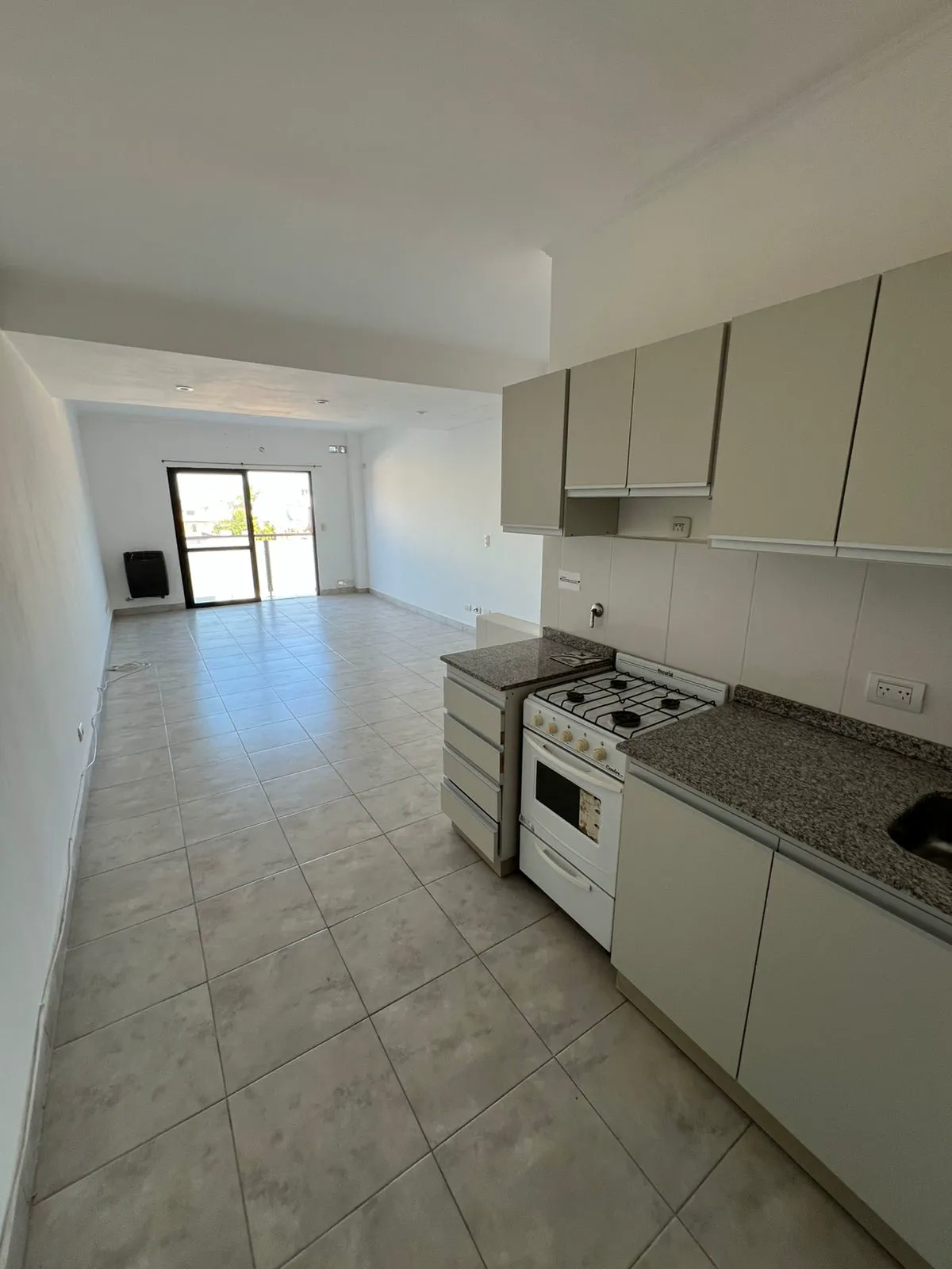 Monoambiente amplio con cochera, balcón y gas natural.