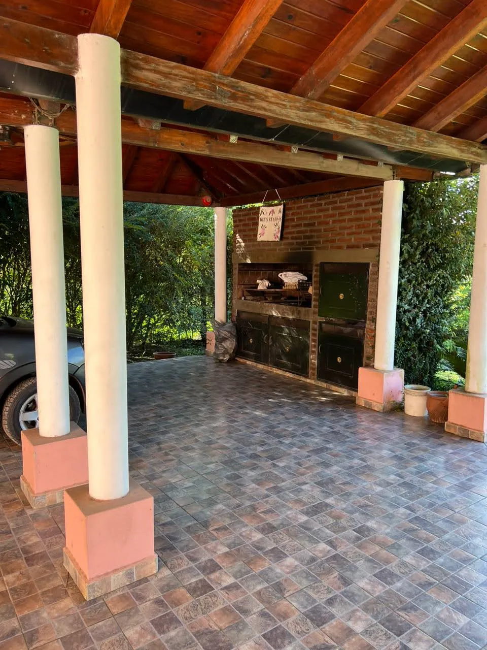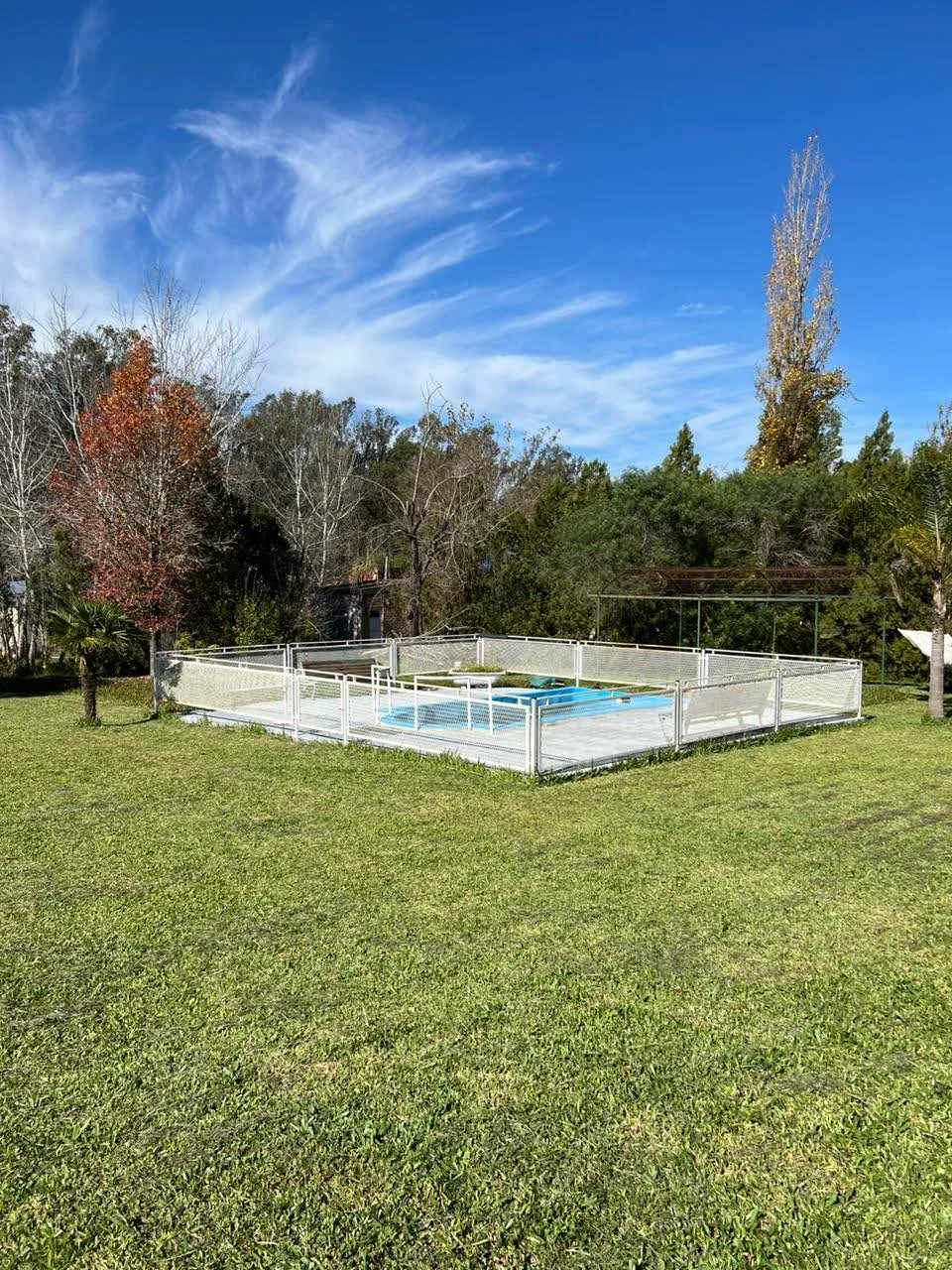 Se trata de una casa con amplias galerías, tres dormitorios, dos baños, garaje para varios vehículos, gran parque arbolado y piscina.